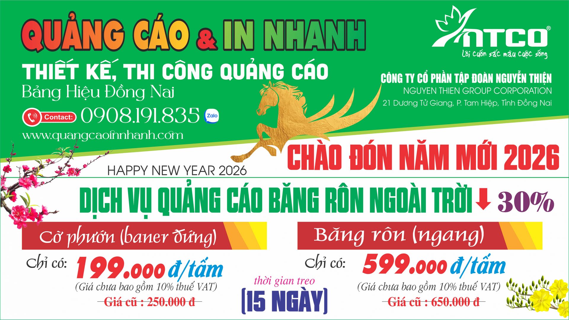 NTCo là đơn vị có kinh nghiệm lâu năm trong lĩnh vực quảng cáo ngoài trời từ bảng hiệu cho đến băng rôn, cờ phướn. Với sự tận tâm, chuyên nghiệp nhikhoicic.com đã chinh phục khách hàng một cách hoàn hảo với những thế mạnh, ưu đãi riêng của mình.
